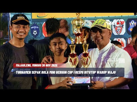 BERITAWAJO.ID, MAJAULENG - Turnamen Sepak Bola Mini Beringin Cup I 2025 tingkat SD/Sederajat resmi ditutup oleh Wakil Bupati Wajo, dr. Baso Rahmanuddin, di Lapangan Lafabessi Paria, Kecamatan Majauleng, Kabupaten Wajo, Minggu (30/11/2025).